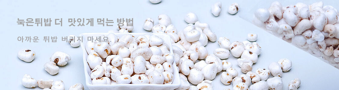 * 튀밥은 습도에 취약하므로 남은 튀밥은 반드시 용기에 담아 잘 밀봉하여 보관 하시고 드실 만큼만 꺼내어 드시는 것이 좋습니다.